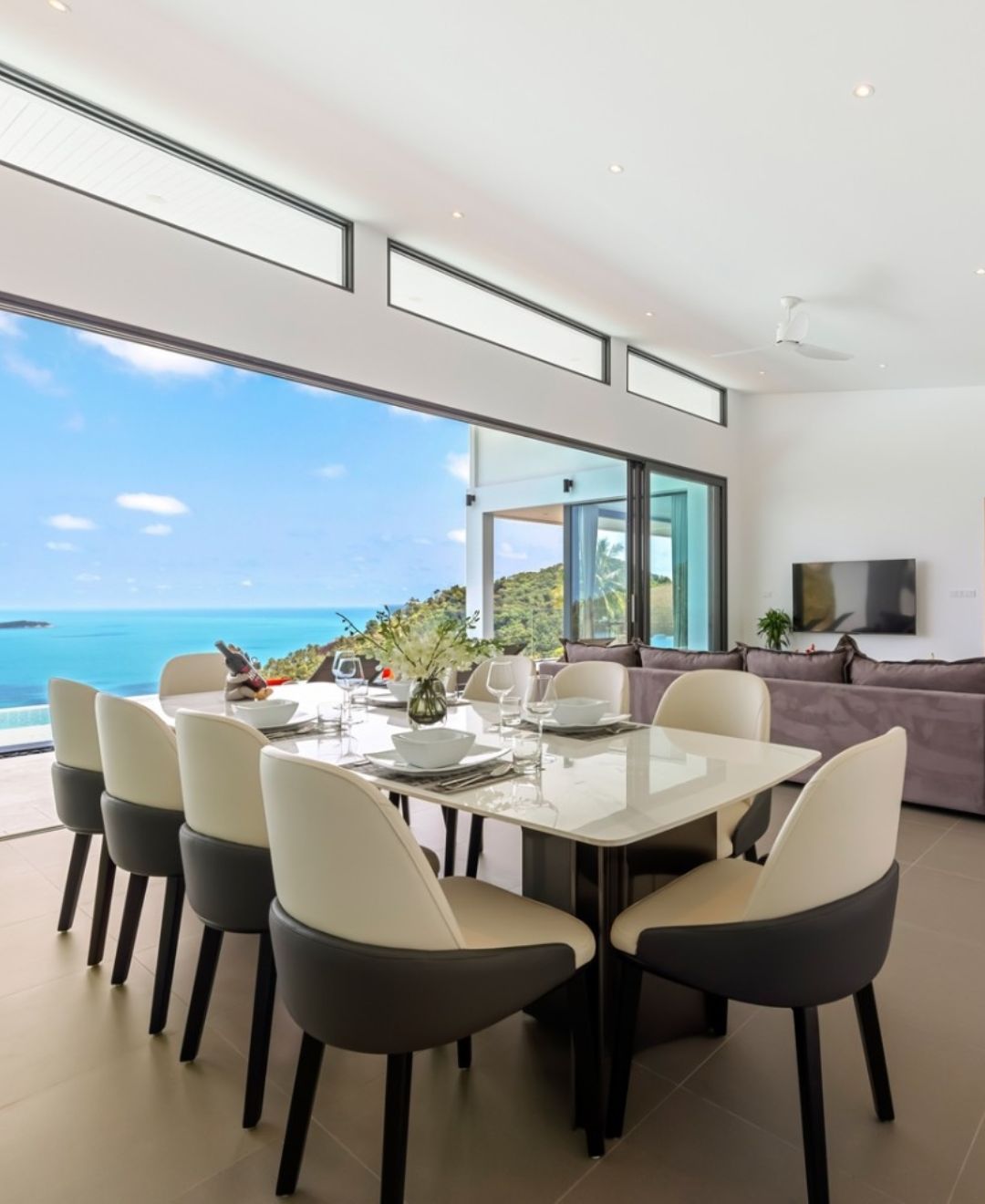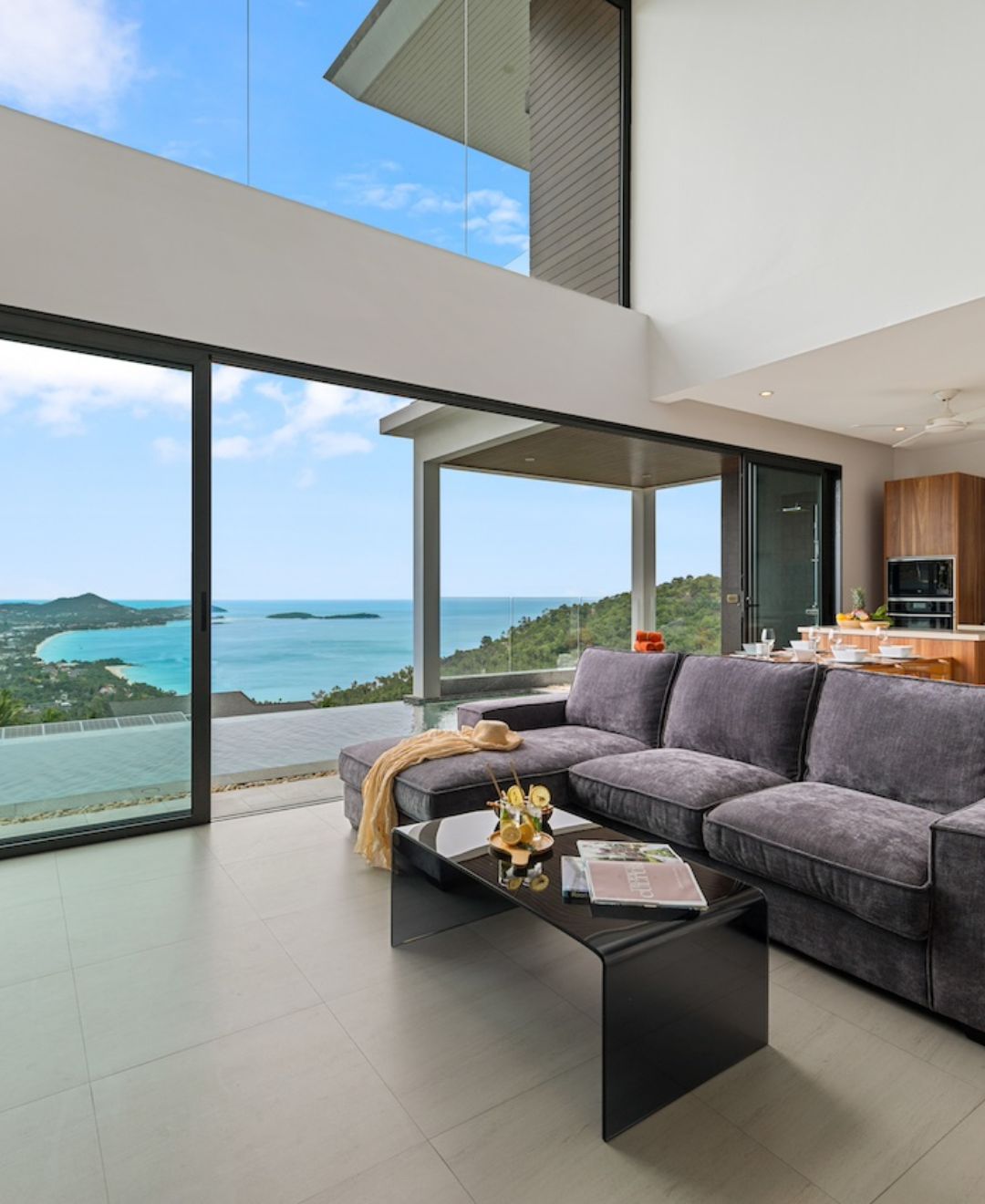 Each villa offers breathtaking panoramic views of the ocean and lush tropical hills, combining privacy and elegance in a peaceful setting.