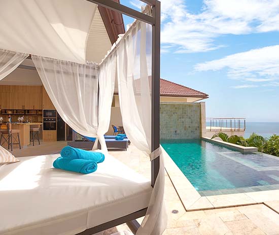 There are 3-bedroom, 4-bedroom and 5 bedroom pool villas. Every villa owns the private infinity pool.